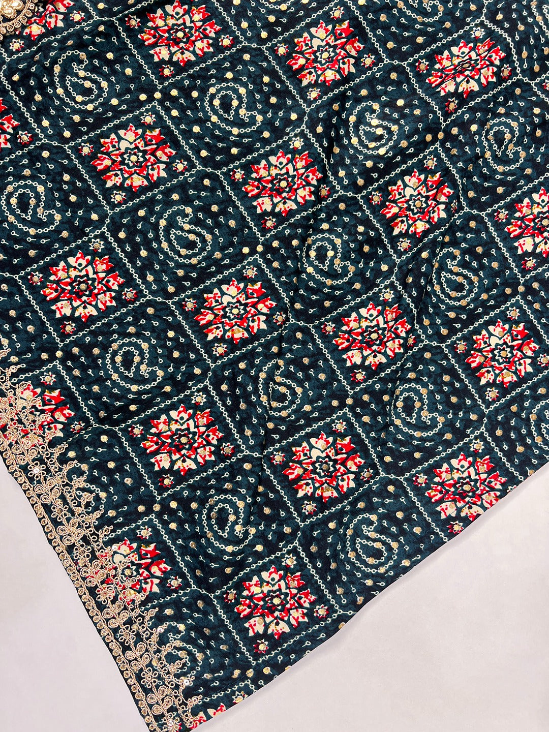 - Work: Printed with Sequins & Thread Embroidery